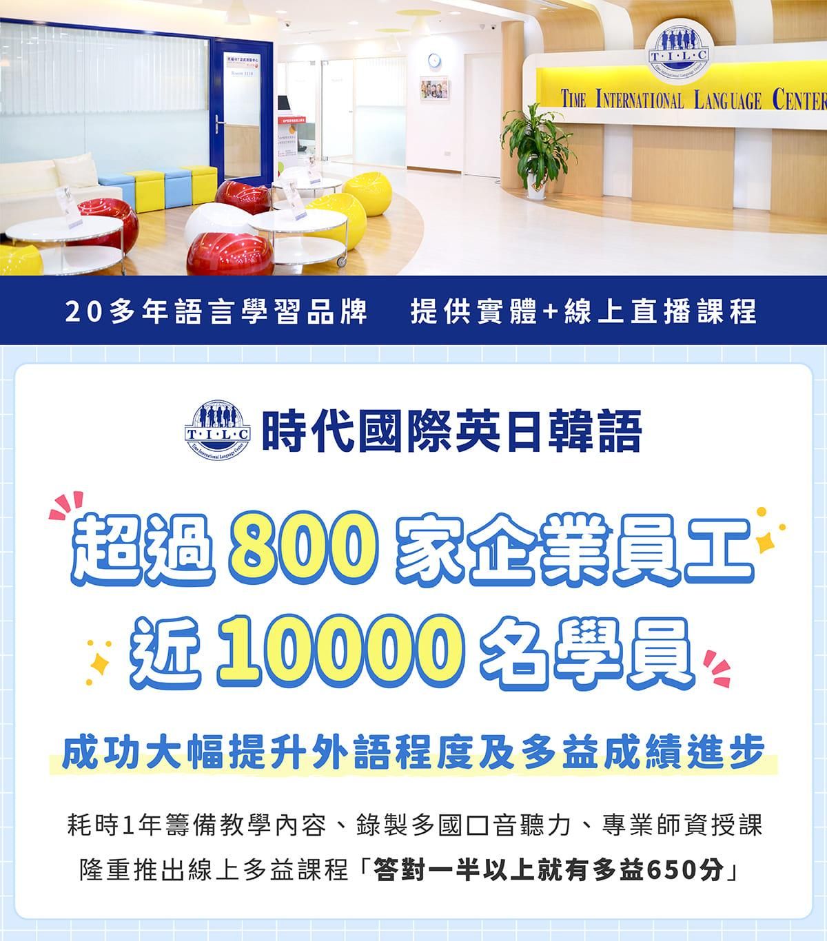 🎁 時代國際LINE好友 省$100 手機點我拿優惠,或搜尋 ID : @TILC 回傳 :「我要多益折100」。