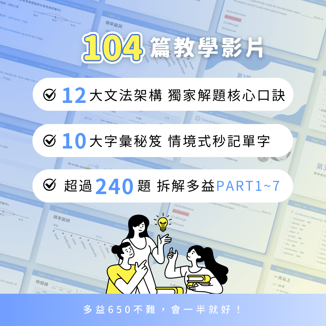 - 【多益考前衝刺課程 Part 1~7】6 堂